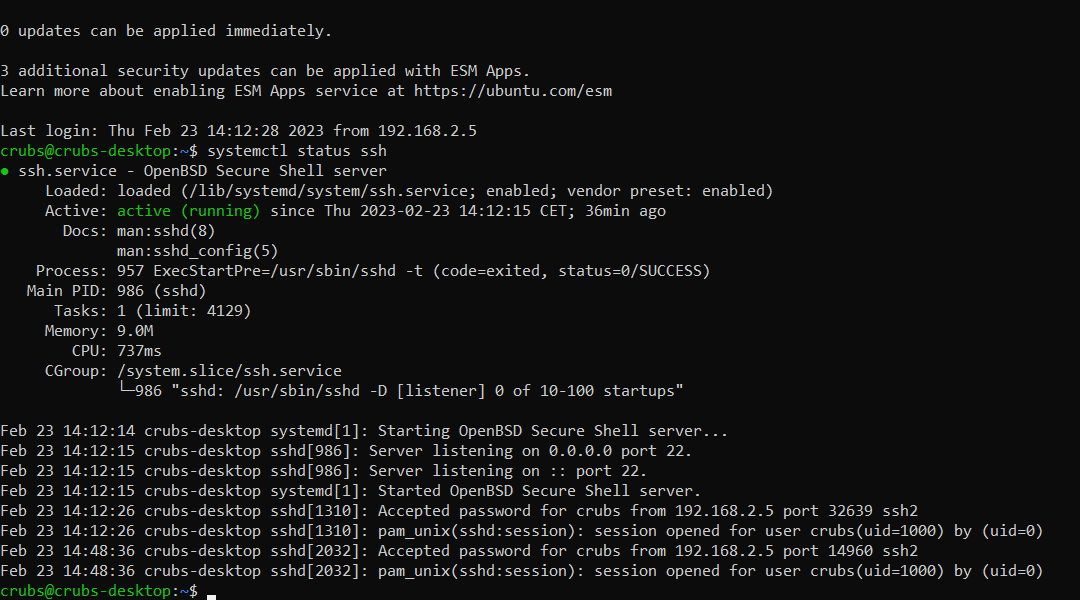 Vérifions que le service ssh s’est bien installé, vous devriez le voir actif comme ci-dessous.